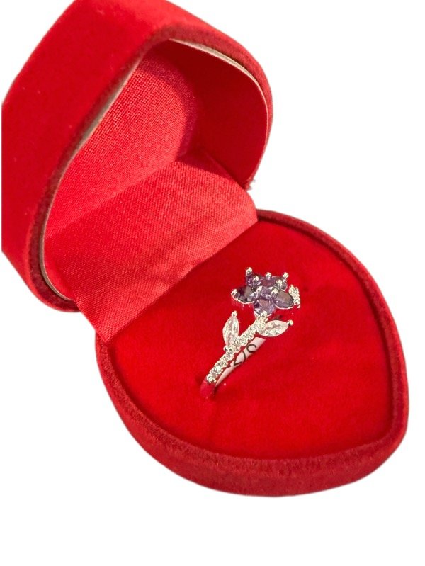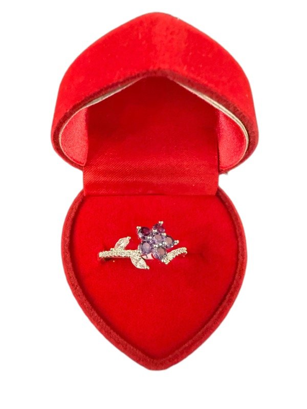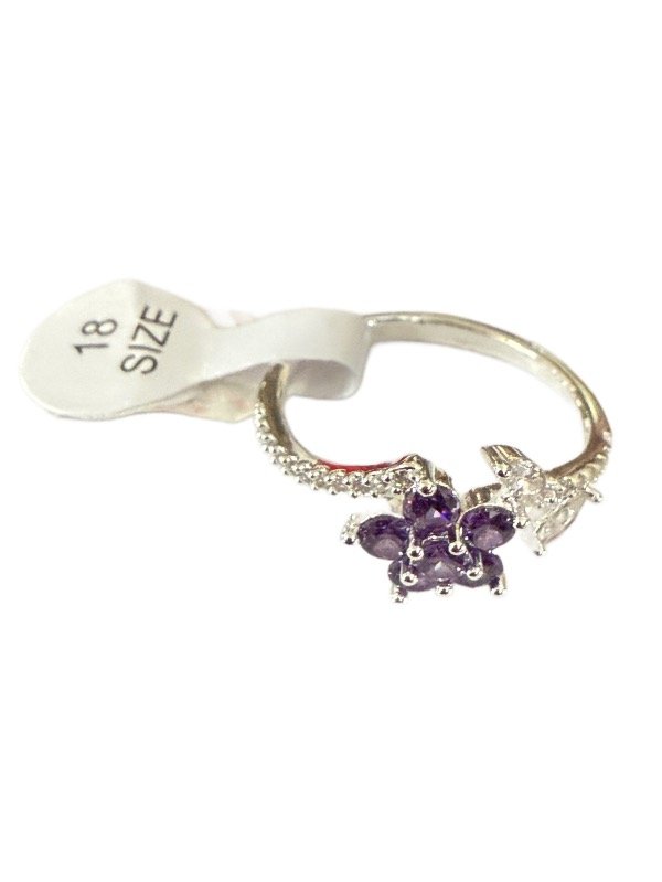 Anillo en acero blanco flor cubic violeta