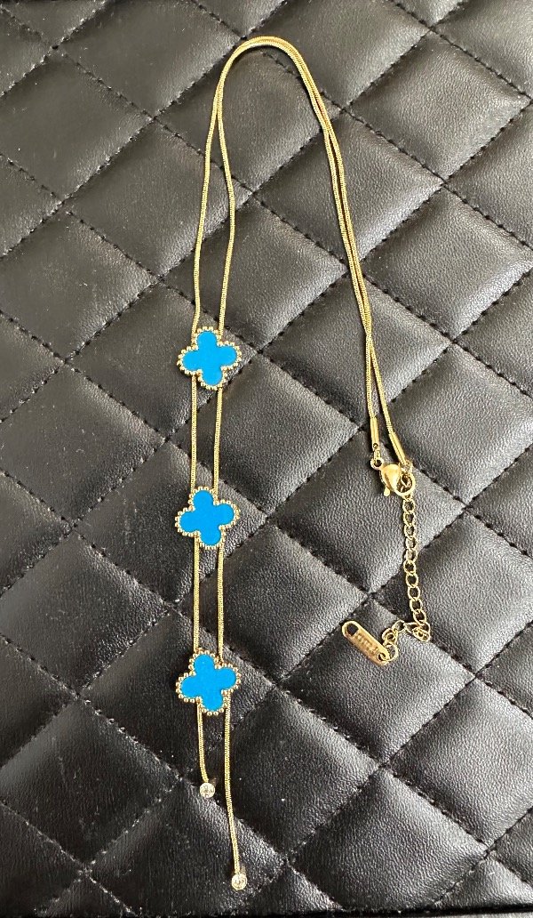 Collar 3 treboles turquesa terminacion strass