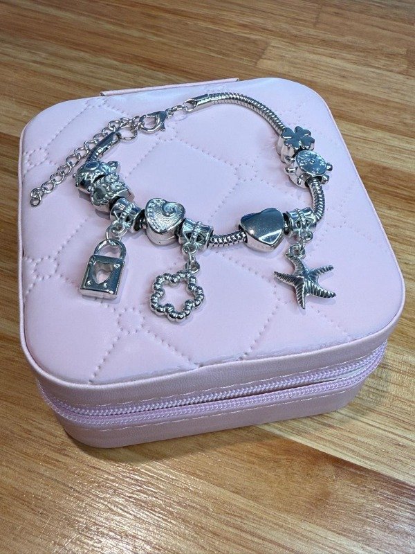 Pulsera pando plateada fantasía (pueden cambiar el diseño de los dijes según disponibilidad)